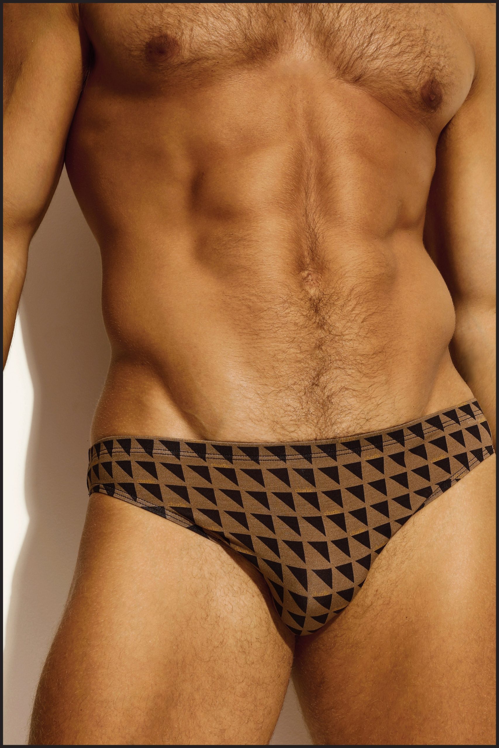 Charlie by Matthew Zink Cafe Icon Geo Printed Bikini Brief with 5/8 fabric-covered waist elastic.??Single-layer front pouch.