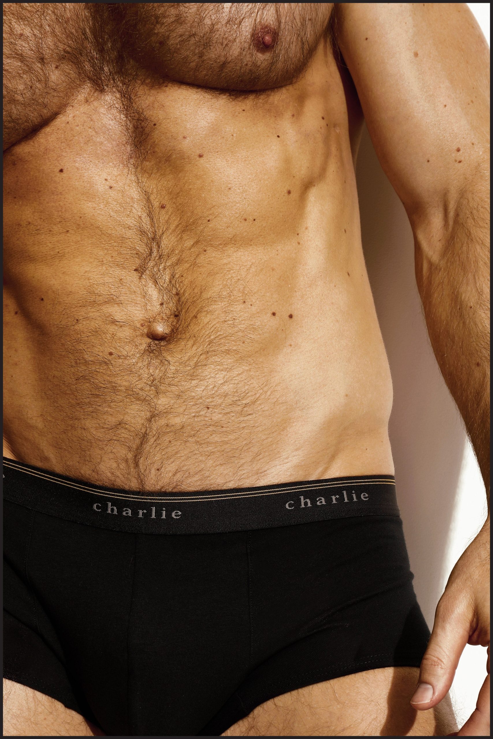 Black Charlie Classic Trunk with black logo waistband elastic. Double-layer front pouch.