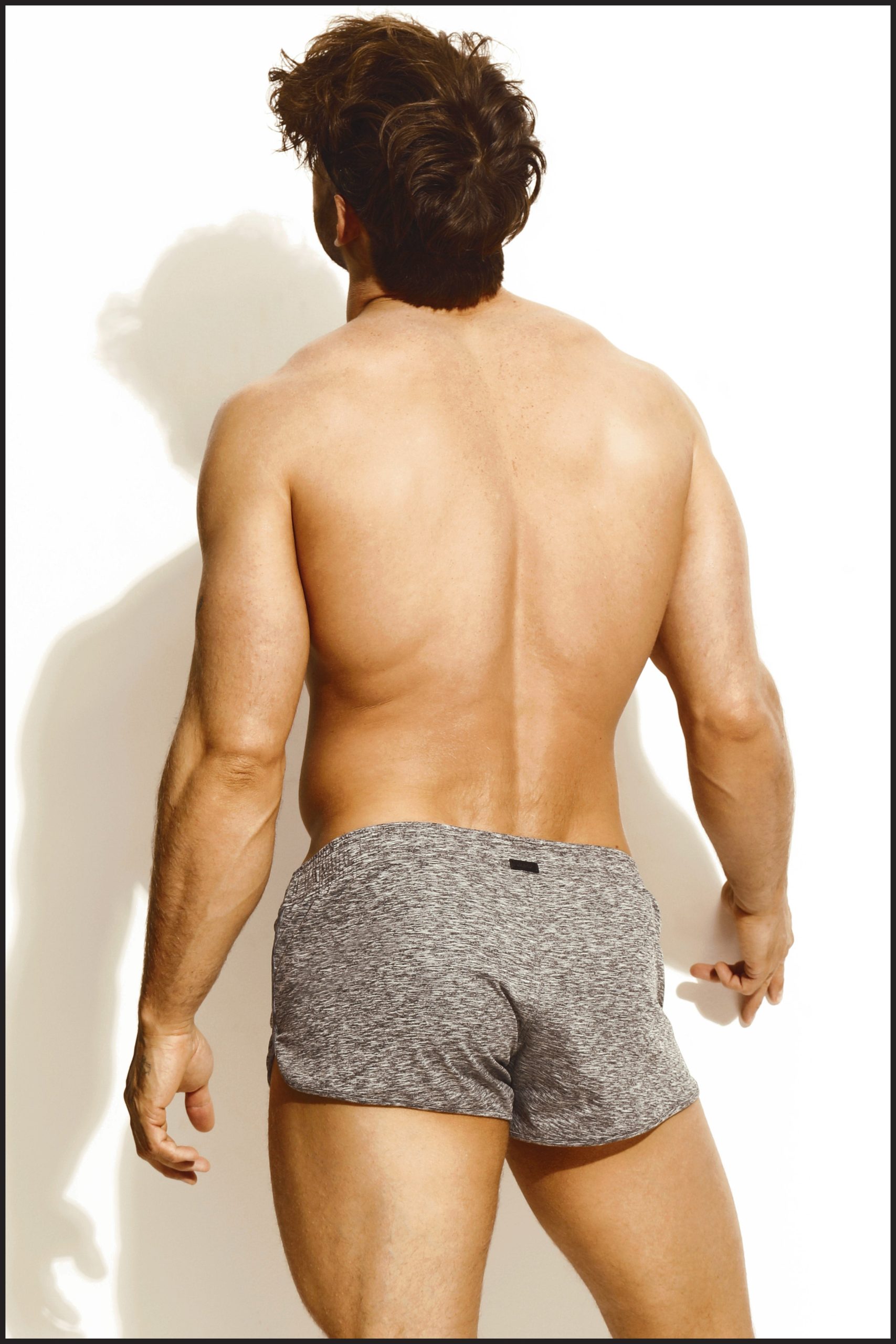 Charlie by Matthew Zink Grey Melange Deck Short. The Deck Short has a drawstring waistband. brief liner and a matte black label. This short is a very similar fit to our Sun Short and Trainer Short.