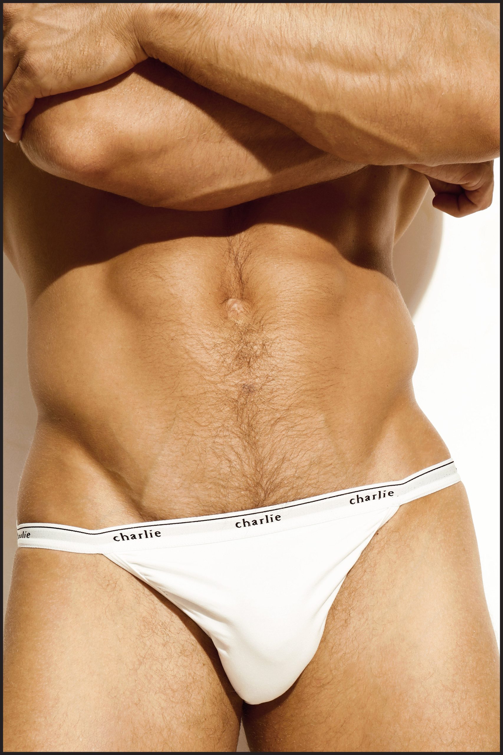 White?Charlie?Muscle Brief?with 2 cm minimal logo waist elastic.? Double?layer front pouch.?