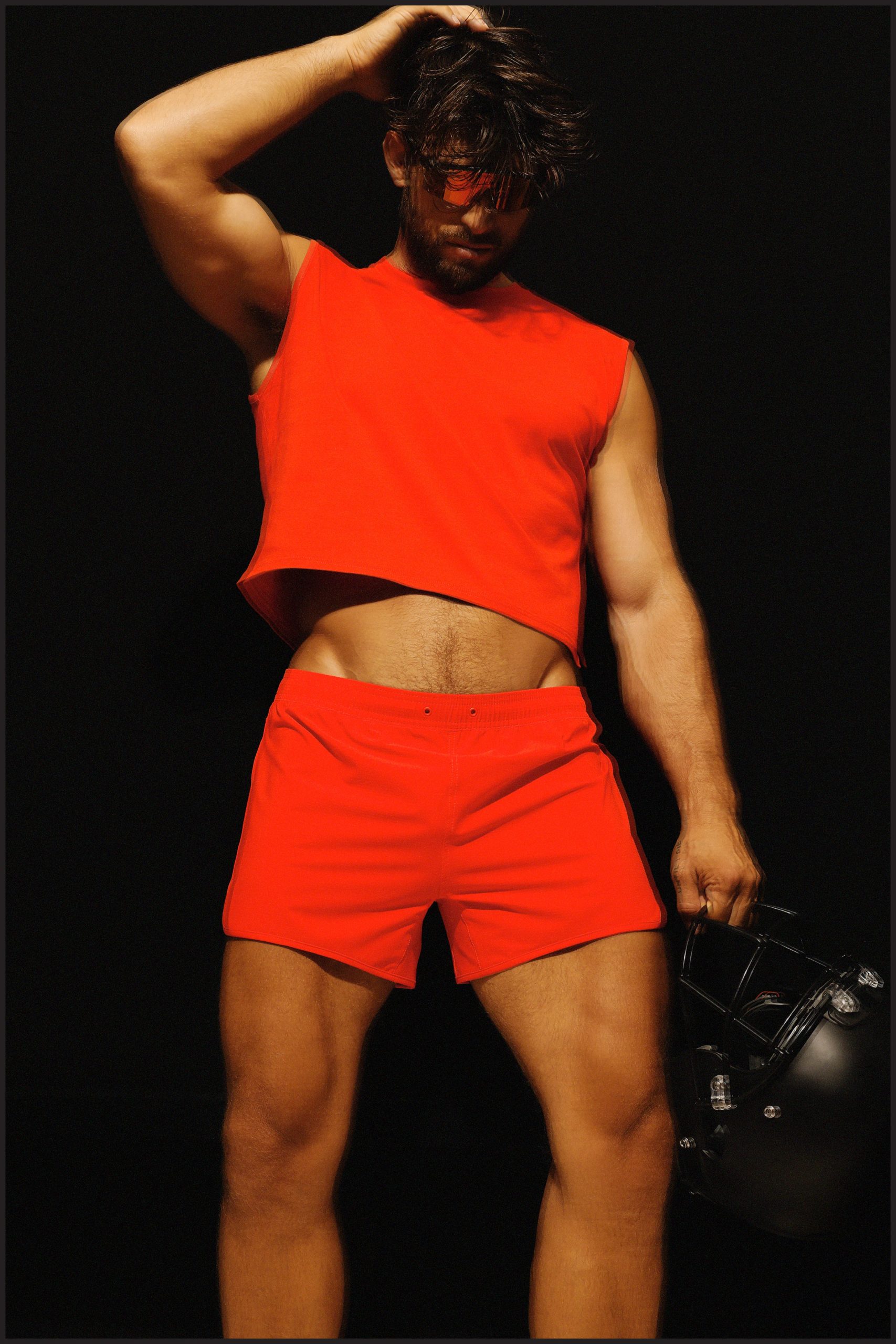 Charlie by Matthew Zink flame red ripstop Court Short is unlined with a drawstring waistband and right hip cell phone pocket. This Court Short has a very similar fit to our Circuit Trainer.