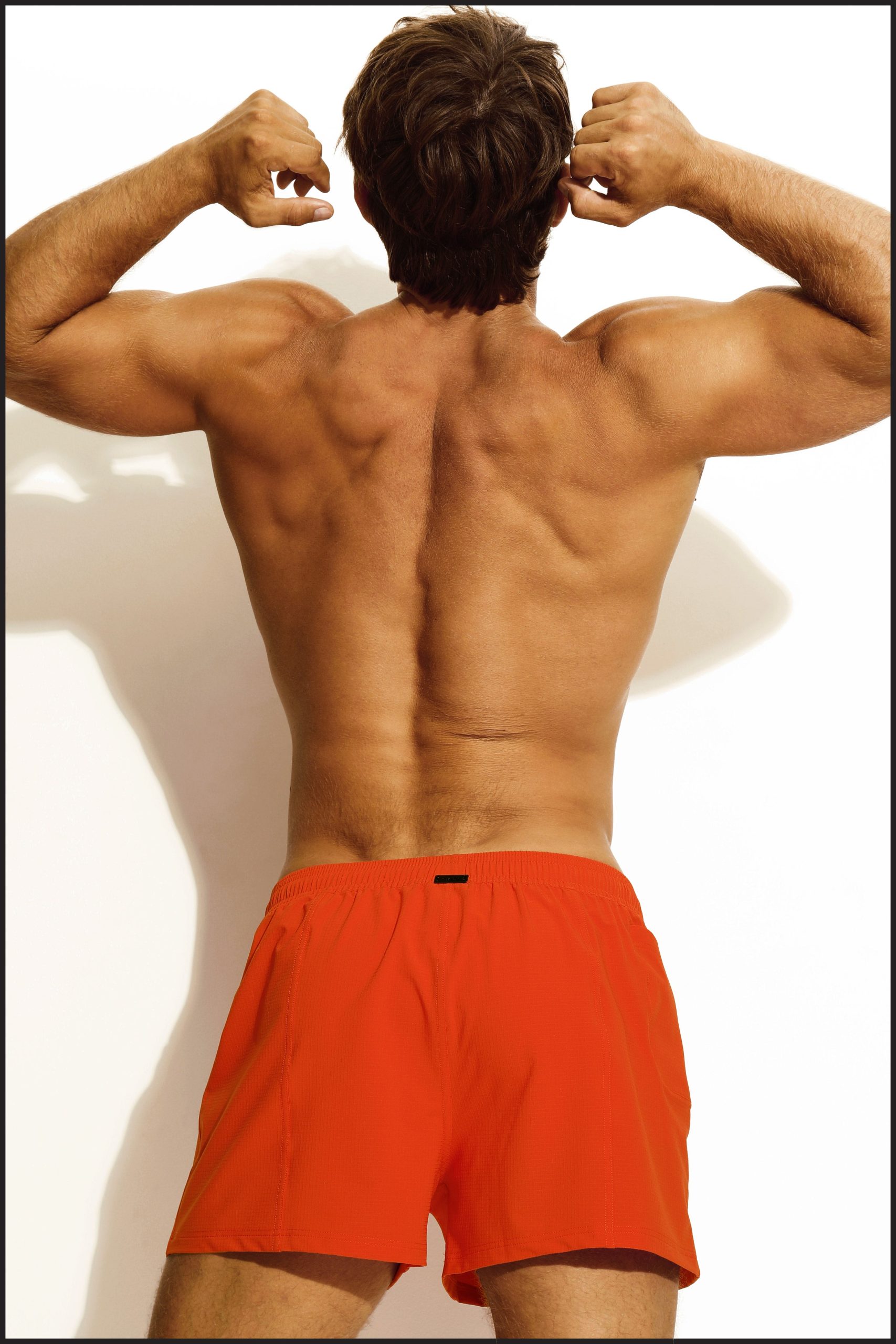 Charlie by Matthew Zink flame red ripstop Football Short is unlined with a drawstring waistband and a single right hip cell phone pocket. This Football Short has a similar fit to our Gym Short.