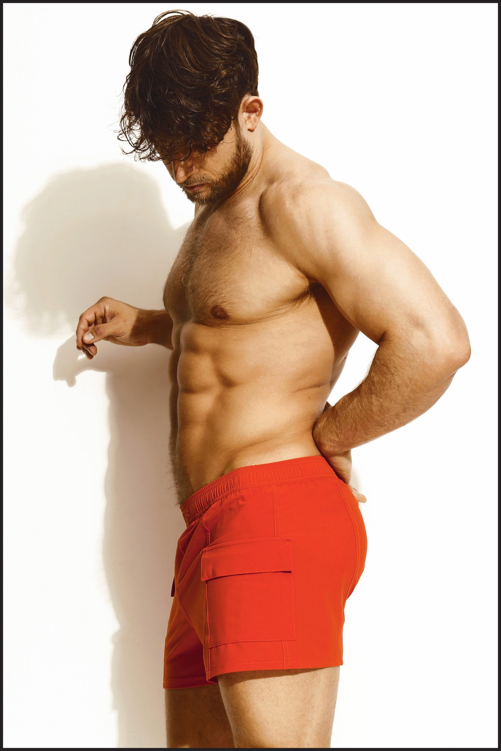 Charlie by Matthew Zink Tomato Red Adventure Short made in custom Italian stretch ripstop fabric.? One back and two side cargo pockets. Drawstring waistband. and brief Liner. This lightweight short is perfect as swimwear. for any nature adventure. or at the gym.