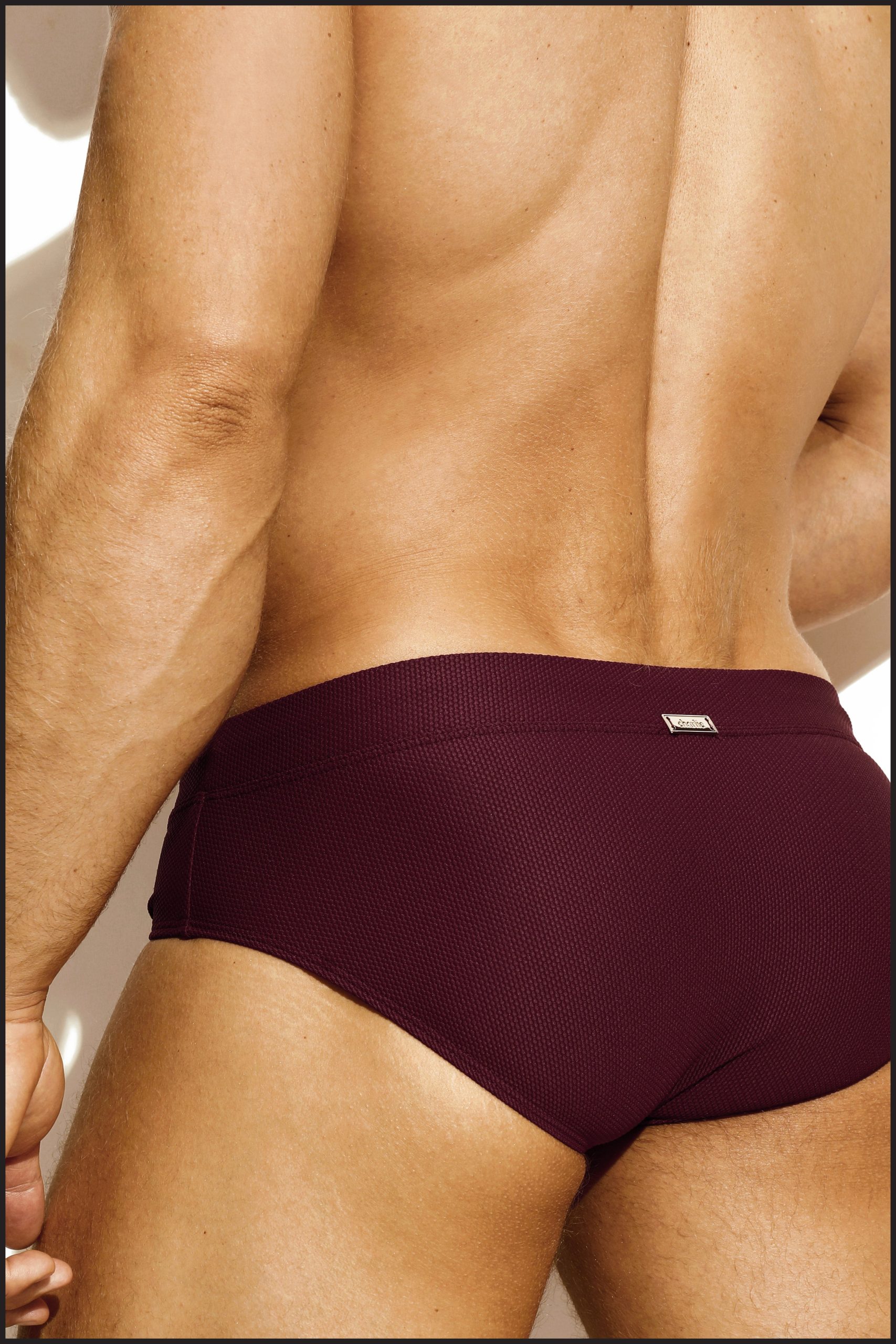Classic Black Cherry Square Cut Brief in our vintage textured fabric with elastic waistband. inside drawstring. and metal gold label. Front lined.